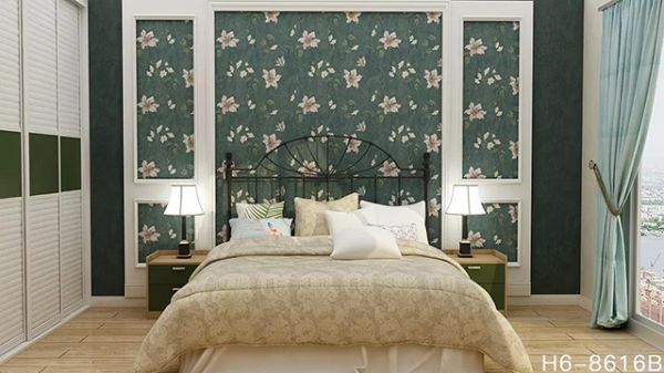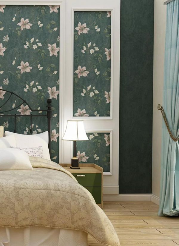 不仅仅是独自献技,深绿与百合的搭配,带给你一个清凉无疑的体验,这间卧室就像是一个色彩和文化的混合体,选用了绿色墙布与柔美的百合作为搭配,来致敬夏日的芬芳。