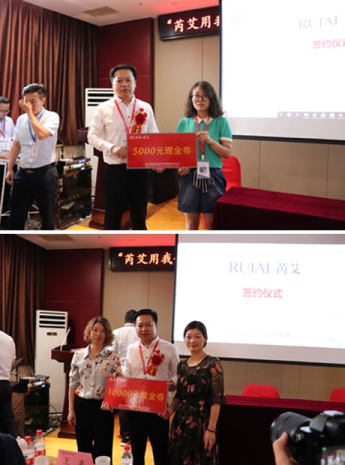 在加盟商发言的环节,芮艾北京代理商杨玲玲女士、河北衡水代理商张静女士、西安代理商牟英樯女士先后发言,她们结合事实、言之有物的演讲深深打动了现场创业者,现场气氛热烈,掌声不断。我们注意到,杨玲玲女士虽然是今年四月刚加入芮艾的代理商,且还有其它创业项目一并进行,但小试牛刀的她已经签下北京地铁3号线03标项目部的长期环保合同,价值达15万以上。来自衡水的张静总,虽然只是在衡水市下的枣强县经营,但在芮艾品牌和经验的全力扶持下,每周流水已达数万;西安的牟总已经与芮艾合作3年了,因为芮艾的实力和真诚,最近她已经拿下了名气响当当的陕西建工集团的空气治理合同。她们的创业过程正是与会者的前进之路,她们的成功的正是新创业者的模板。