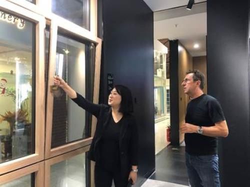 活动当天,卢卡斯教授首先来到米兰之窗位于北京的首家直营门店,在米兰之窗店员的带领下,充分了解并体验米兰之窗目前现售的门窗产品。在体验的过程中,卢卡斯教授对米兰之窗的产品外形和工艺赞不绝口。