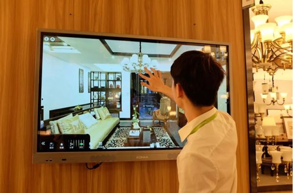 而更人性化的一项应用是,配灯系统可利用手机或者平板电脑实时取景,或者把家里客厅照片扫码上传到系统,模拟出灯具安装在自家天花上的效果,让消费者身临其境,瞬间看到自己未来的家。