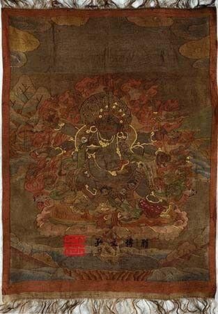 ▲泓文博雅馆藏缂丝唐卡《六臂玛哈嘎拉》
