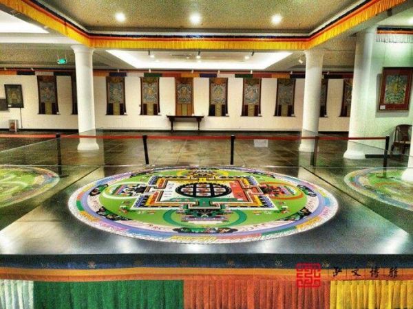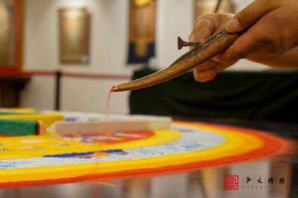 坛城沙画精美绝伦,光华夺目。彩沙坛城是坛城主体艺术中最为炫目的一支,通常是在法会期间绘制,仪式结束后就会扫毁,世人十分难得亲眼一见。2014年坛城被列入我国第四批国家级非物质文化遗产名录。