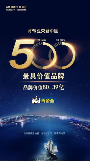 80.39亿!肯帝亚再获2019年度中国500最具价值品牌!
