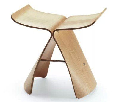 蝴蝶凳(Butterfly Stool)于 1954 年由日本设计大师柳宗理(Sori Yanagi)所设计,因外形酷似蝴蝶被叫做蝴蝶凳,1957年蝴蝶凳在米兰三年展时获得金奖。它的诞生以战后日本的经济重建为背景,产品最大特点就在于其构造的独具匠心——开头完全相同的两个部分通过一个轴心对称地连接在一起,连接处在座位下用螺丝和铜棒固定,是功能主义与传统手工艺的结合。