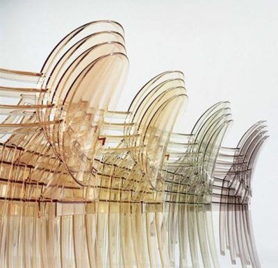 法国幽灵椅,由法国鬼才设计师菲利普·斯塔克所设计,整个椅身采用聚碳酸酯材料,并且沿用 Louis XVI Chair 的椅身外形,保留老家具轮廓的同时,用「无焊料一体成型」的方式来让椅子达到完美的外观。椅子拼接在一起,可以达到一种十分梦幻的场景效果。(来源:设计癖)