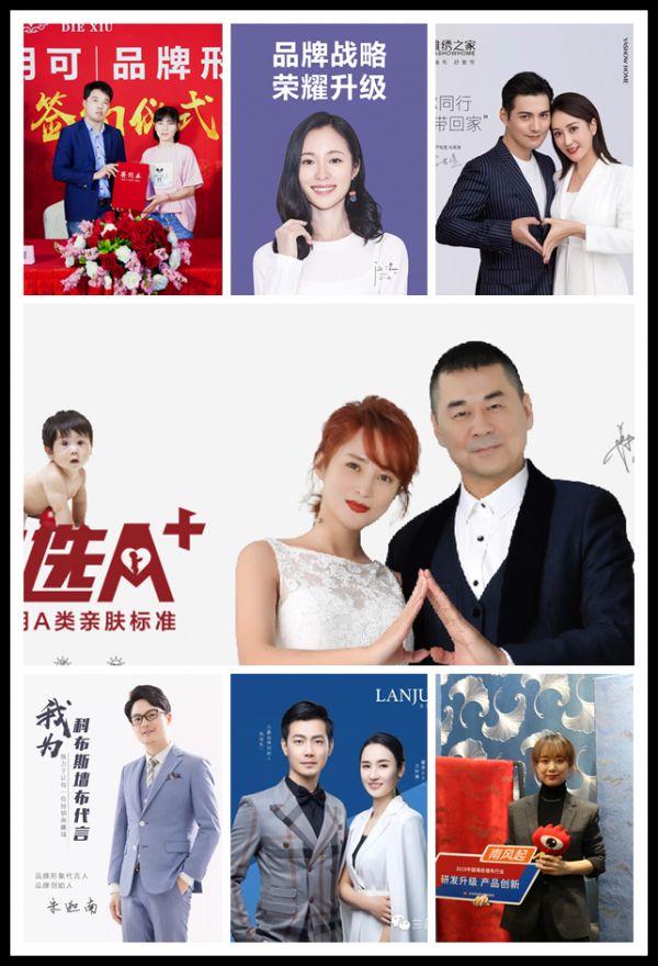 从2018年开始品牌代言人风靡市场,这一现状在2019年还是持续升温。可罗雅请了文艺女神江一燕,汇明请到“皇上”陈建斌夫妇;“安吉妈妈”胡可代言了蝶绣,雅绣之家签约了明星夫妻严屹宽夫妇。同时也看到许多创始人为自身品牌代言,以此为代表的有科布斯墙布朱迦南,蝶莊郝芯和兰爵倪伽俐夫妇。