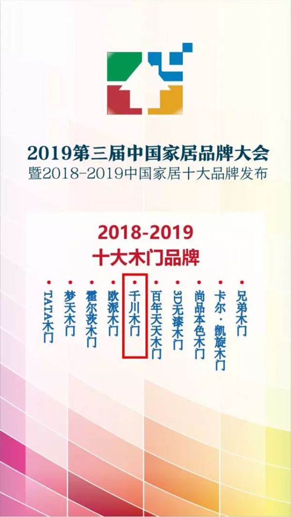 6月28日,2019第三届中国家居品牌大会在北京隆重举办。在50多家新闻媒体、200多名行业大咖、600多名企业代表的见证下,公开发布了“2018-2019中国家居十大品牌”。千川木门凭借产品优势和品牌实力,再度上榜“十大木门品牌”。