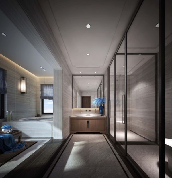 卫生间着重于实用、典雅与品味。在呈现精简线条同时,又蕴含奢华感,通过异材质的搭配,并朝向“人性化”的表现方式进展。用简单的几何造型,丰富的光影吸引人们的目光。