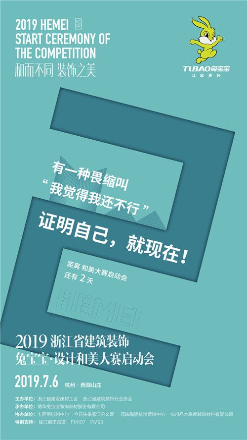 7月6日,2019年浙江省建筑装饰兔宝宝·设计和美大赛正式启动,让我们不见不散!