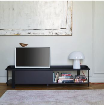 由Pagnon&Pelhaître设计的Dita电视柜将精巧的异形立柱和精致的饰面完美结合,并搭配设计精美的配套拉手。纤细的柜腿以非常自然的方式延续了结构中的线条。