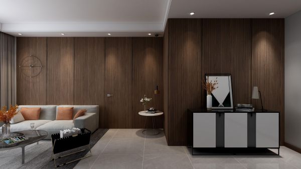 大隐隐于市,将居室门做隐形化设计,不仅使居室空间整体造型更加统一,在视觉上更加宽敞大气,同时满足室内空间的私密性。