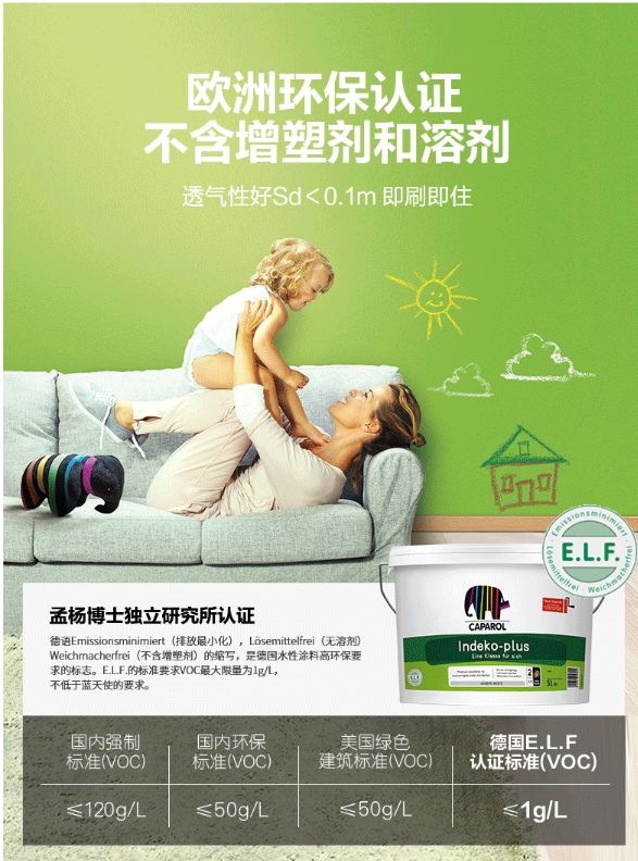 对于德爱威涂料来说,虽然在环保健康方面的优势不言而喻,毕竟通过的是比欧洲环保标准还严苛的E.L.F.认证标志,有着近乎为零的VOC检测报告。但德爱威涂料更觉得应该把健康环保作为一个基本点来抓,而不是视为卖点来秀。只有对装修污染的“零容忍”,“天下无毒”的时代才会来临。