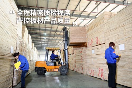 ▲大王椰进口马六甲生态免漆板经多重质检方可出厂