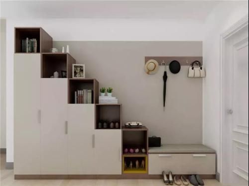 阶梯式柜在满足收纳功能的同时也增加了趣味性,可以放置不同高度的鞋子,也可以在进门处设计一个换鞋凳子方便更舒适的换鞋。