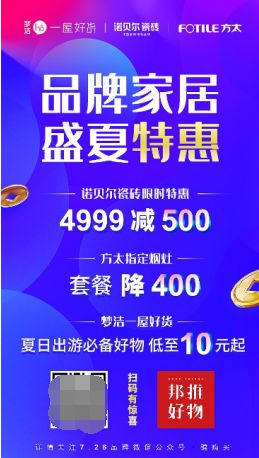 梦洁一屋好物、诺贝尔瓷砖、方太联手推出品牌家具剩下特惠活动,限时满减、直降、好物低价等多种用户活动,7月26日一键开启。