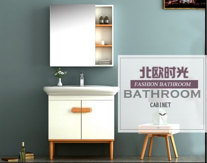 拉手是整个浴室柜的点睛之笔,巧妙的把门板造型和木质拉手相呼应;精致纤细的柜脚在保证承重安全的前提下,以特殊工艺达到防潮标准;通过双色调搭配,用简单的设计打造简约时尚的北欧风情。
