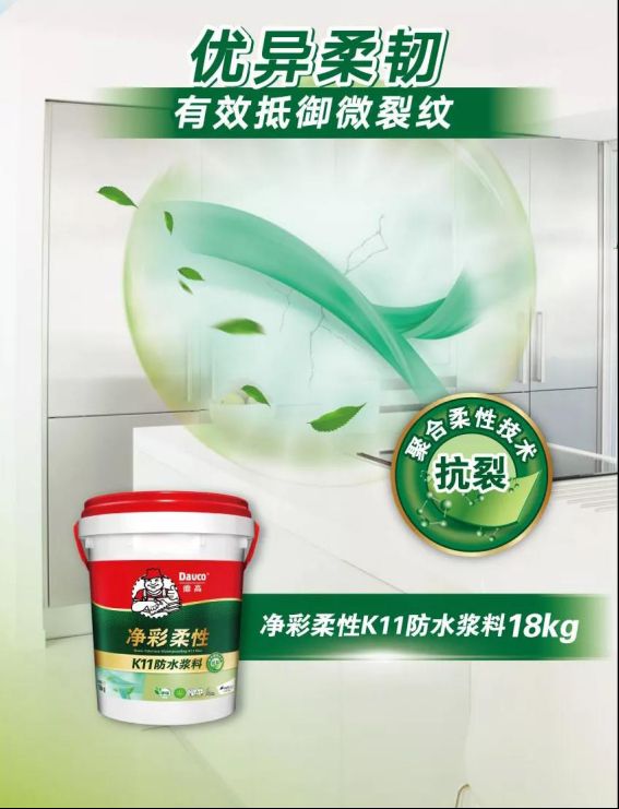 如果您也有这样的顾虑,赶紧试试德高K11净味柔性防水浆料,绿色的,柔性的!