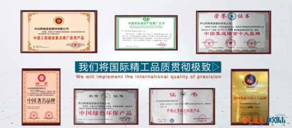 以国际精工品质贯彻始终,欧陆美居产品荣获中国集成吊顶十大品牌、中国集成墙面十大品牌、中国绿色建材产品、中国工程建设重点推广应用产品、中国著名品牌、政府采购优秀供应商、实用新型专利证书等众多荣誉资质。