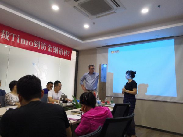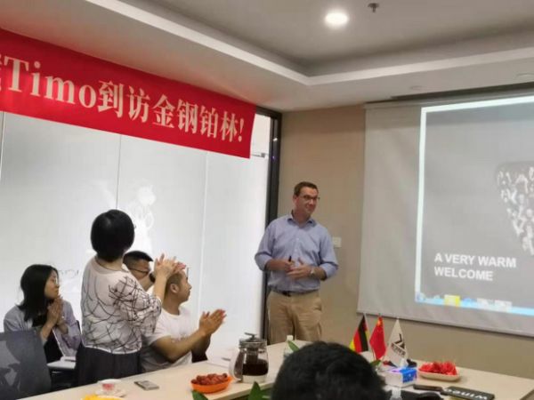 7月23日,德国Wineo销售总监Timo到访于深圳市金钢铂林总部,并与金钢铂林董事长李文娟举行了深入的交流。
