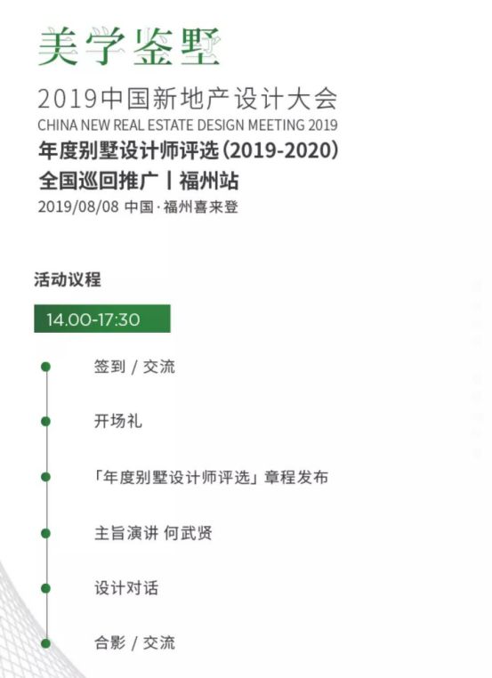 8月8日,福州·中庚喜来登,我们以“美学鉴墅”为主题,盛大开启『2019中国新地产设计大会·年度别墅设计师评选 全国巡回推广-福州站』。