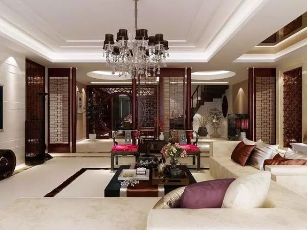340平别墅中式风格装修,客厅大气、优雅、沉稳为主基调,没有过多累赘复杂的造型,崇尚原木韵味,体现了主人对高品质生活的追求及内蕴品性。