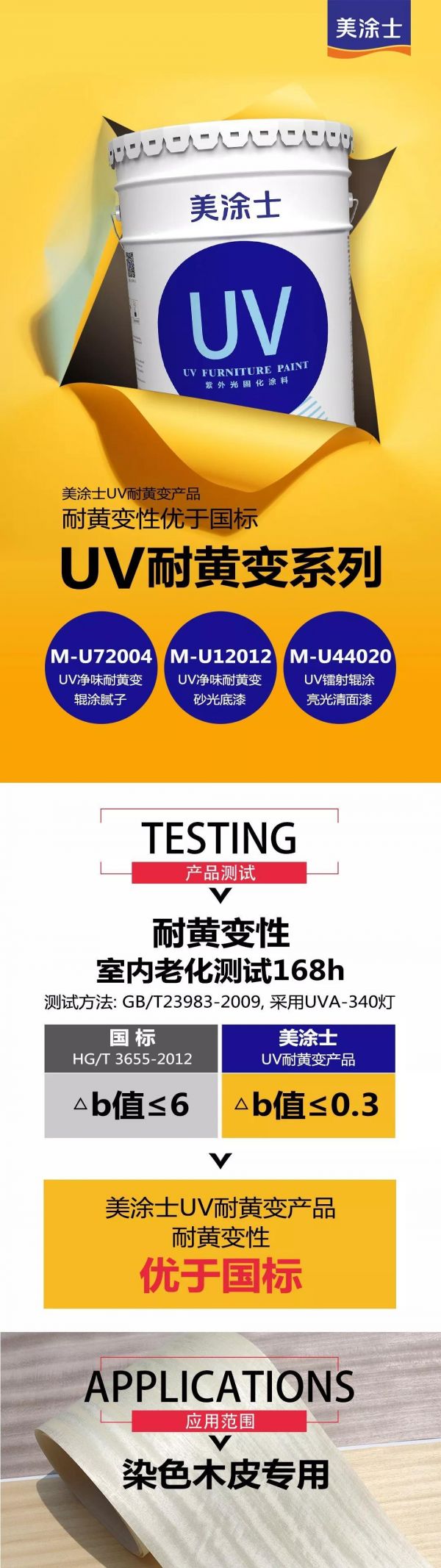 越是高要求,越能创造价值!针对染色木皮变色的难题,美涂士家具漆推出的UV辊涂耐黄变涂装方案,有效解决染色木皮变色的难题。