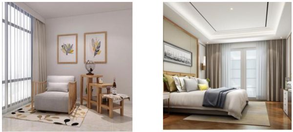 卧室的功能从未有太多的变化,它一直是睡眠、休息、的重要场所,将飘窗部分改成榻榻米的格式,使用户多了一处坐卧的空间,也显现了设计师的心血凝聚。