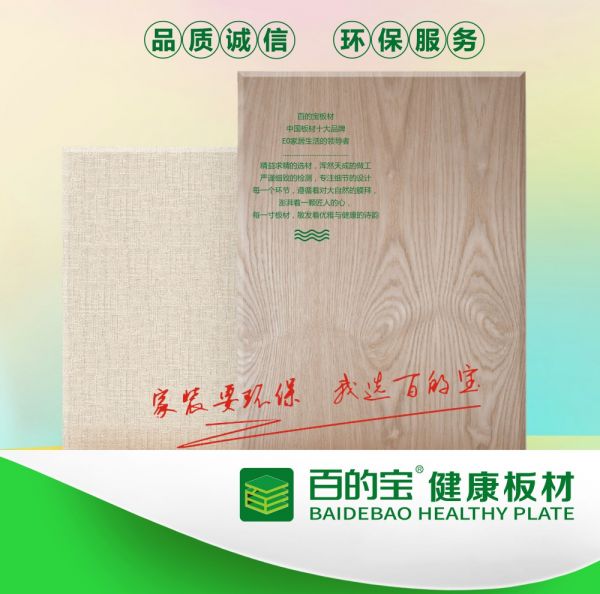 中国板材十大品牌百的宝,在环保型装饰材料的研发和市场推广上一直处于国内领先地位,产品已达到苛刻的欧洲E0、E1级环保标准,如今的百的宝板材已经成为中国健康环保居家建材的符号。