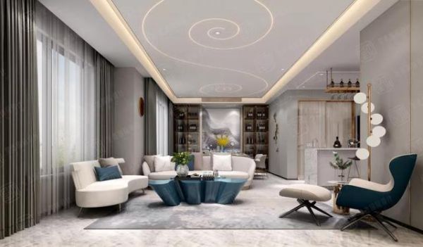 无锡别墅装修设计定制异形茶几+爵士白沙发,看似简洁朴素的外表之下却常常折射出一种隐藏着的贵族气质,提升整个空间的质感。