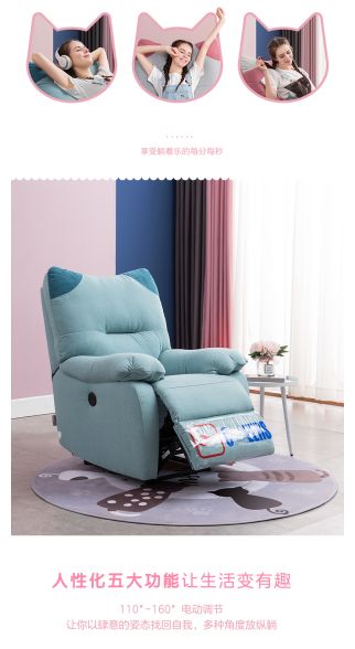 这款沙发的椅背的弧度设计得非常好,靠上去像有一双柔软的大手牢牢拖住了背部。除此之外,它的角度还能够直接电动调节,范围从110度-160度都没问题,无论是休闲、娱乐、还是休息,都能完美满足身体放松的需求。从肩背到脚踝的舒适感,让你坐下就不想起来。仿羊毛的面料,睡上去柔软又亲肤,即使是夏天也不会觉得闷热。