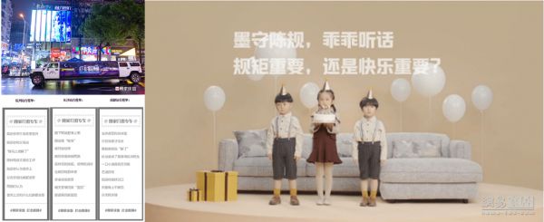 在低关注度的家居行业,顾家家居抓取“失陪家庭”的社会热点话题,全方位多角度挖掘与爆破,如承包报纸头版、线下场景喊话、无人机灯光秀等大举动,联动明星、家居界企业家的关注,并跨界《银河补习班》、西贝、曹操专车、海马体、新潮传媒,从出行到饮食,从社交到生活,打造了一场名副其实的现象级营销,让更多的人开始关注家庭、回归家庭。