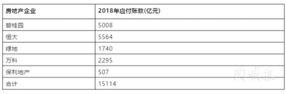 5家房企应付账款达15114亿,陶企背负资金压力?