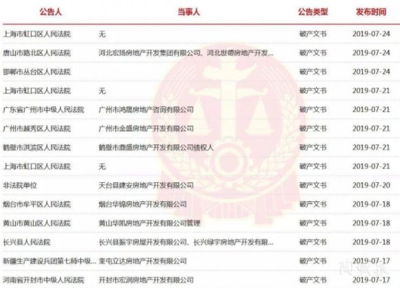 2018年万科秋季例会上,万科董事会主席郁亮一句“活下去”引起行业震动,一语成谶。人民法院公告网最新数据显示,截至7月24日, 2019年全国有274家房地产企业发布破产公告,仅7月24日发布相关公告的就有3家。