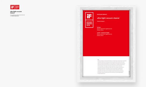 另外一款优胜奖产品轻羽无线吸尘器,不仅有创新1kg轻量设计,从结构到外型遵循极简主义,去掉累赘部件,组成全新轻量化主机,减轻清洁负担;而且重新分割整机重量分布,将重心置于低处,配合地刷卡位,让整机可随时随地平稳直立停放。一机同时有2大创新,可谓百里挑一,也同时斩获了2019年德国IF设计大奖。