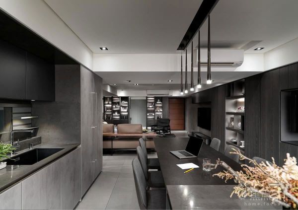 设计师将现代风格的简约美学发挥得淋漓尽致,为喜欢中性色调的业主,营造低调内敛却不失居家温度的住宅。