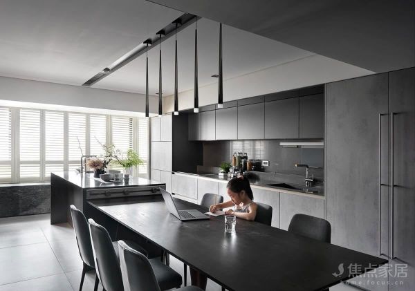 实用性是住宅设计不可忽略的环节,多功能餐桌,形同中岛延伸,同时兼具孩子们读书、阅读的功能,让餐厅成为凝聚家人情感的重要场所;