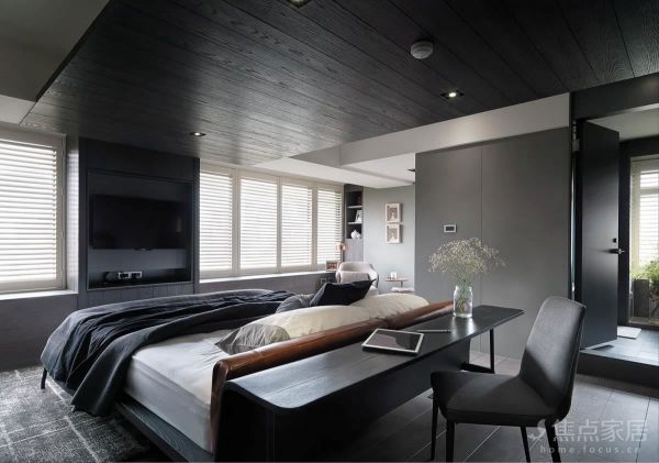 私密性强的卧室,则搭配兼具书桌功能的床,创造最大空间效果。