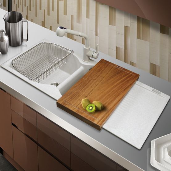 橱柜台面材料常见石英石,橱柜中的水槽,很多人见到的材料大多是不锈钢或陶瓷,对于石英石水槽不知大家了解多少?
