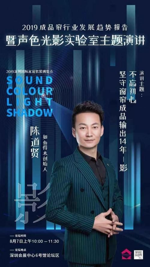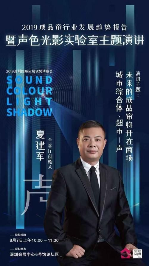 8月7日上午10:00-11:30,深圳国际家居软装博览会,6号馆二楼平台论坛区,2019成品帘发展趋势报告新闻发布会暨声色光影主题演讲将隆重召开,届时将由此次成品帘飞行报道的总策划人、深圳市博奥展览有限公司总经理、深圳国际家居软装博览会组委会主任萧健承先生发布《2019成品帘发展趋势报告》,宏大而复杂、具体又真实、知微而见著的成品帘行业将在萧总的发布中铺陈开来……敬请莅临指导!