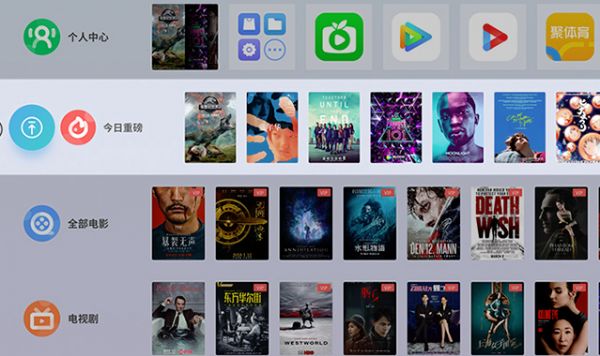 坚果J9搭载JMGO OS4.0智能操作系统,采用怀旧的分散“大瀑布流”的展示模式,无功无过,但是少了点智能化、人性化的交互体验。并且,这种稍复杂的操作系统,对于家中有老人、孩子的用户是一种考验。