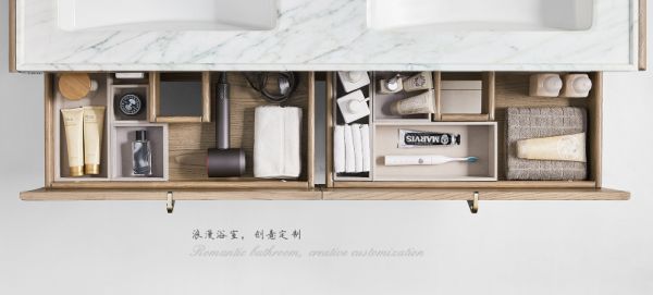 同时朵维诗浴室柜还专注于收纳性的功能设计,海量空间的储藏抽屉,能够很好地收纳各种浴室物品,还有专为化妆品设计的小抽屉及小隔间,洗浴用品的专用镜柜等,收纳空间增加35%,处处的贴心人性化设计,只为营造一个干净整洁的卫浴空间,让你尊享品质生活的舒适体验。