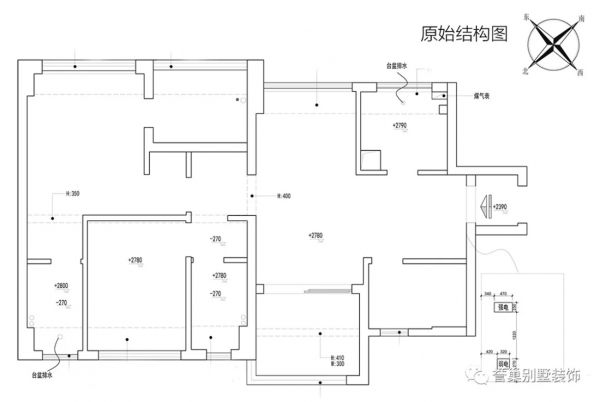 通过对本案的原始结构图和平面布置图进行对比,我们可以发现设计师将客厅中的一些墙面去除,使客厅空间最大化,提高了空间利用率。