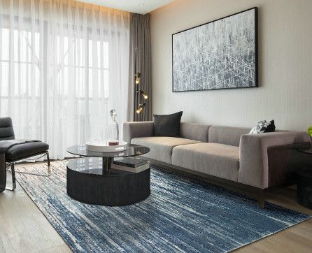 在客厅或者卧室摆放上一块质感满满的艺术地毯,可以为整个家居空间增色不少。这款地毯将轻奢美学与抽象艺术相结合,脱离了外在形式,简约时尚,符合现代人的审美观,提升了整个空间的品味和质感。