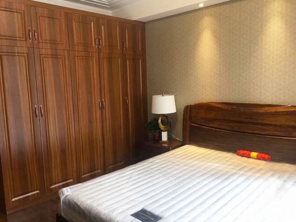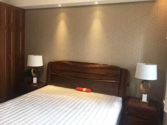 卧室没有太过花哨的设计,只是为了满足使用需求,一统家居定做了一个置顶实木衣柜。衣柜的超大储物空间,可以满足衣物、被子等置物需求,保持卧室空间干净整洁。