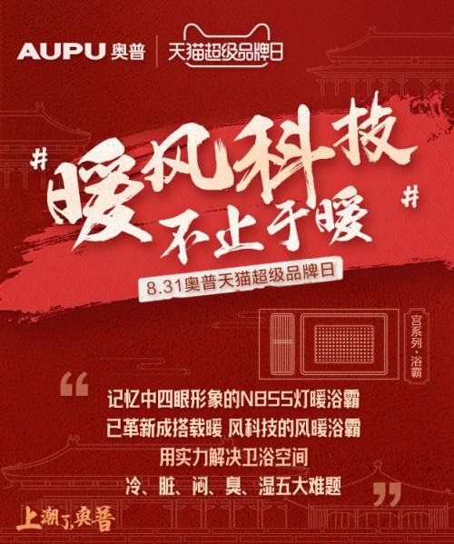 新国货、故宫、天猫三大力量的加持,势必让奥普8.31超级品牌日更具期待!这不仅展示出奥普的品牌实力,更为家居行业如何在互联网+的时代发力、如何打造“国货之光”竖立典范。