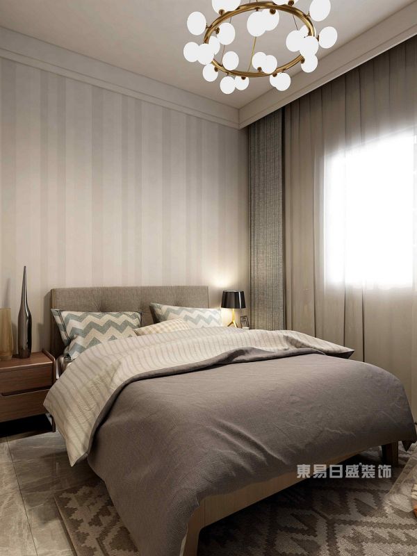 次卧在空间装饰上采用简洁、硬朗的直线条,用色淡雅,营造出柔和宁静的气氛