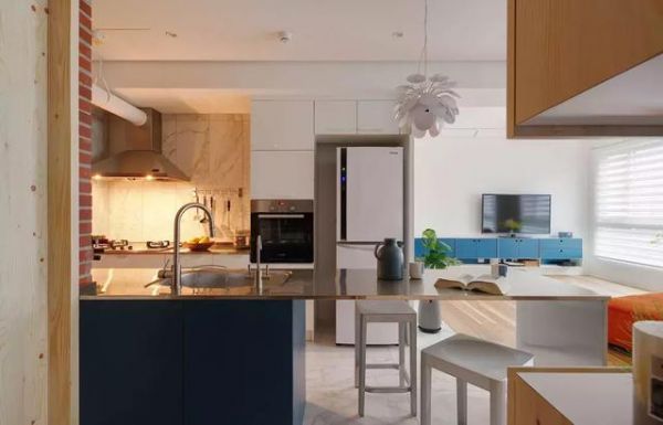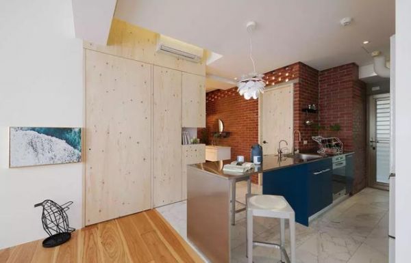 在简约风中加温馨木质和复古红砖,打造时尚的小户型