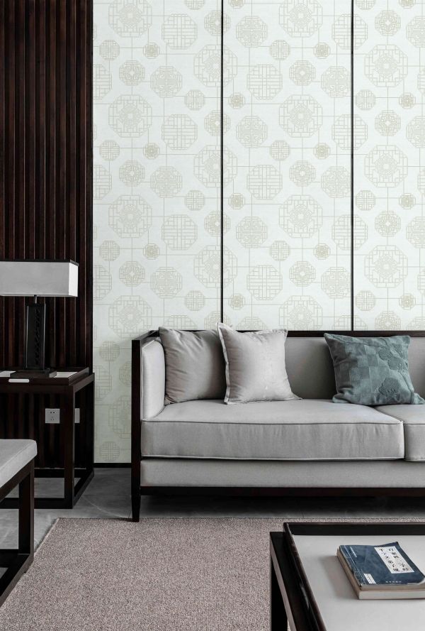 花窗是古代园林建筑中兼具实用与装饰的载体。日间采光、观景,夜间赏月,千百年来多少目光透过这扇或竹木或石瓦的玲珑精致,见证了日夜的交叠,与四季的更替。婉约的中式韵味,在这款墙布上表露无遗。