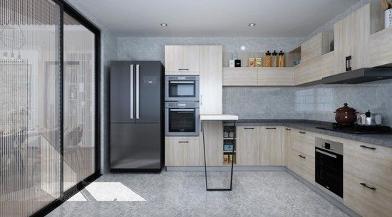 在这里,你既可以拥有山川湖海,也可以拥抱厨房、昼夜与爱。密斯系列的厨房空间将收纳功能发挥得淋漓尽致。一体化的橱柜,嵌入式放置洗碗机、烤箱、消毒柜,使整体空间简明而干净。门板上线性五金拉手,与整体极简风格的完美呼应。极简空间特别考验色彩的搭配,台面的高雅灰搭配橱柜的原木色调让人百看不腻,增加吧台的特别设计,方便少人用餐,为每一个烹饪时刻增添生活情调。