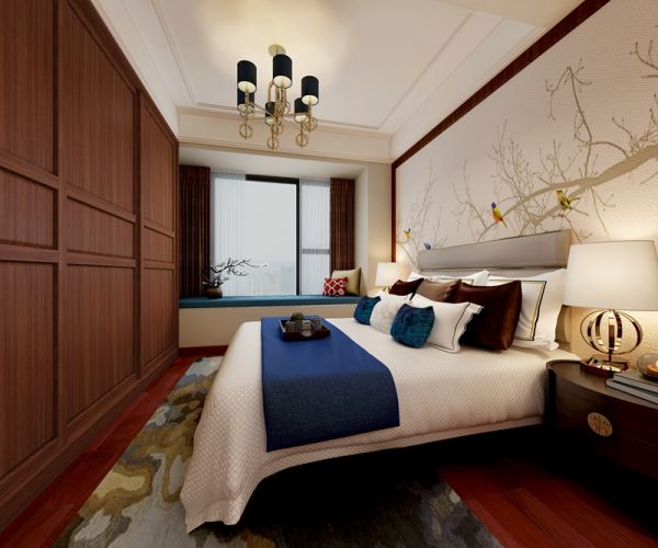 运用中式元素的花鸟画做床头背景,给老人打造一间意趣十足的养老宅。长辈房随处可见的中式元素,诸如台灯底座、床头柜拉手等,
